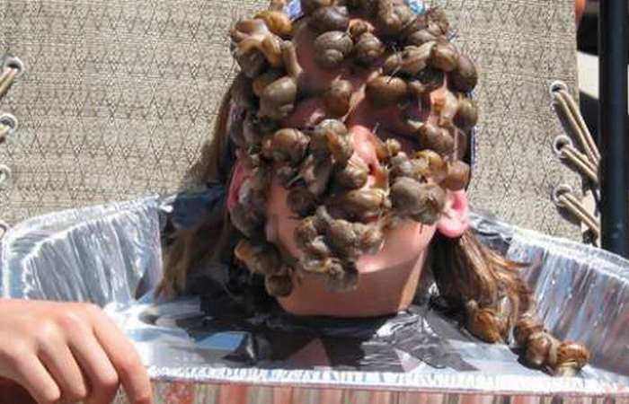 Зачем это было сделано, загадка. 11-летний американец Фин Кехэлер из штата Юта на свой день рождения позволил друзьям и соседям покрыть его голову улитками, которые оставались на ней в течение 10 секунд. Видеозапись об этом «рекорде» была отправлена в Книгу рекордов Гиннесса, но там отказались вносить в список рекордов настолько бесполезное достижение.
