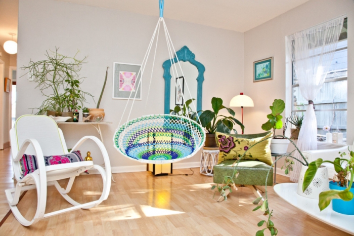 Подвесные кресла – не новинка. Но дизайнеры начали активно использовать их в качестве сидячих мест для гостиной совсем недавно.