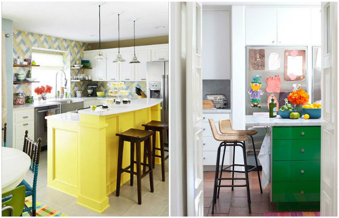 Белые кухни по-прежнему актуальны, но все чаще в них можно заметить остров контрастного интерьера. Такой дизайнерский прием позволяет оживить холодность белого интерьера.
