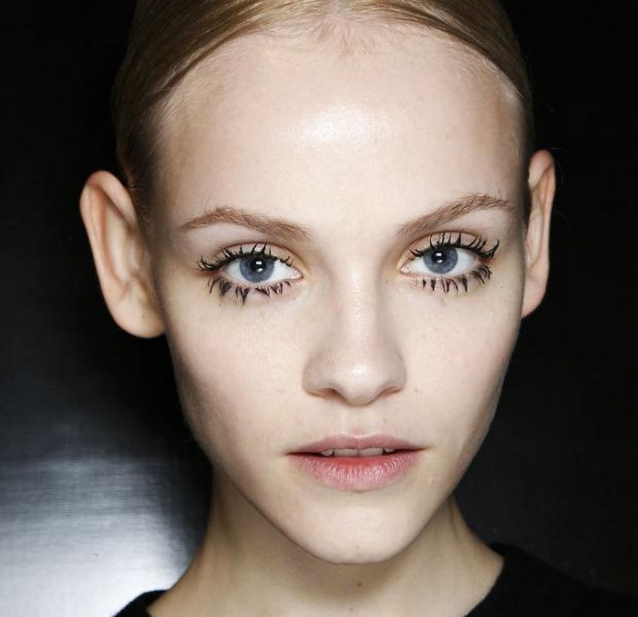 Тут и полный макияж не нужен – можно ограничиться только тушью и нейтральной губной помадой, как у моделей на показе Jeremy Scott.