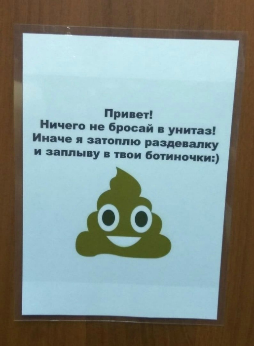 2. «Наш унитаз очень мстительный, учитывайте это, бросая в него что-то!»