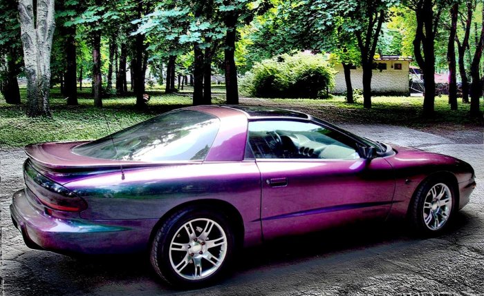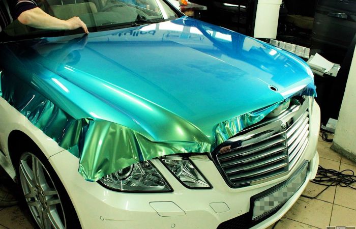 Следующий модный тренд – виниловая пленка с расцветкой хамелеон, перламутр, глиттер. Словно известная рептилия, машина-хамелеон может быть нескольких цветов сразу. Фиолетово-сине-зеленые оттенки варьируются буквально на ходу, когда автомобиль проезжает мимо.