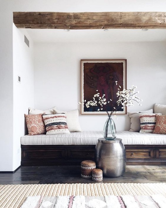 Интересный вариант оформления встроенного диванчика в комнате, что станет находкой.