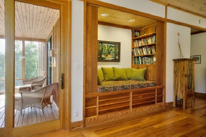 Прекрасная идея создать такое удачное и уютное местечко для чтения книг, что понравится.