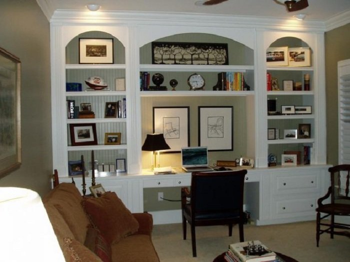 Размещение прекрасного встроенного книжного шкафа, станет лучшим решением для декора комнаты.