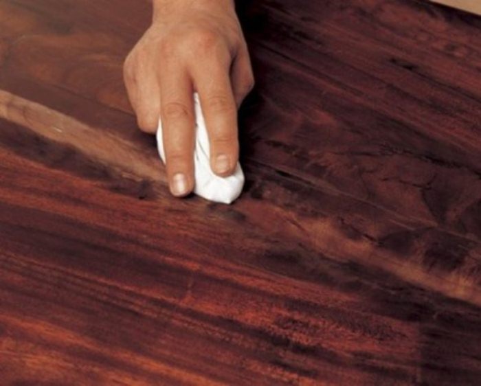 Если мебель из необработанного дерева, то использовать масло нельзя, поскольку останутся жирные пятна. В этом случае на помощь придет спирт или уайт-спирит. Если вдруг вы решите оттирать скотч спиртом от полированной поверхности, то действуйте максимально быстро, чтобы не повредить лаковое покрытие.