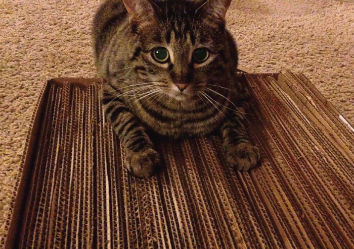 Теперь конструкция здорово напоминает кошачий лоток из картона. То, что нужно.