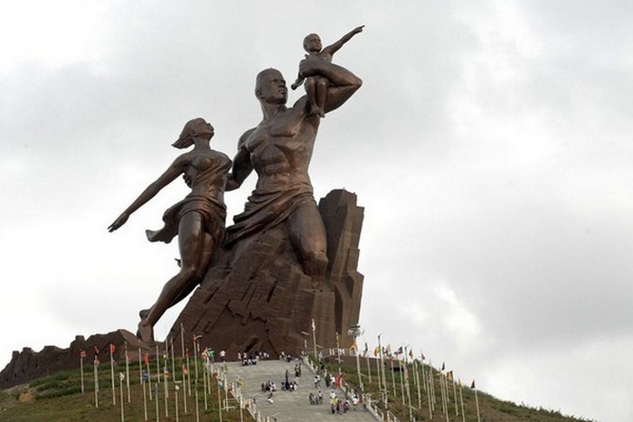 49-метровый Монумент африканского возрождения построен с видом на Атлантический океан в пригороде сенегальской столицы Дакар. Гигантская статуя изображает мужчину, который держит в левой руке ребенка, и женщину. Чтобы построить этот памятник стоимостью 27 миллионов долларов, понадобилось четыре года. Это самая высокая статуя в Африке.