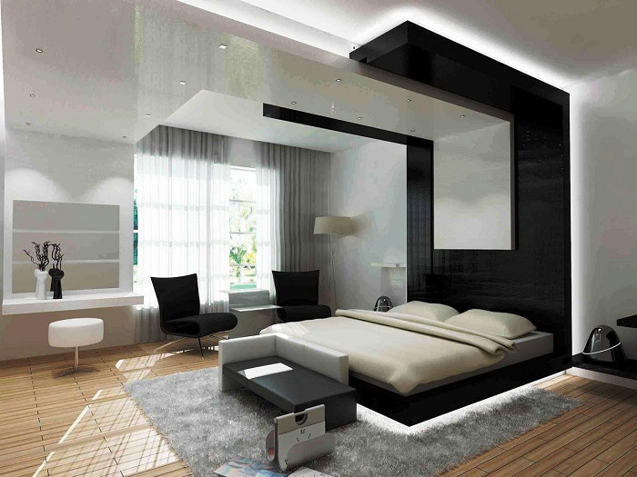 Шикарный черно-белый интерьер спальной, который не оставит равнодушным абсолютно никого.