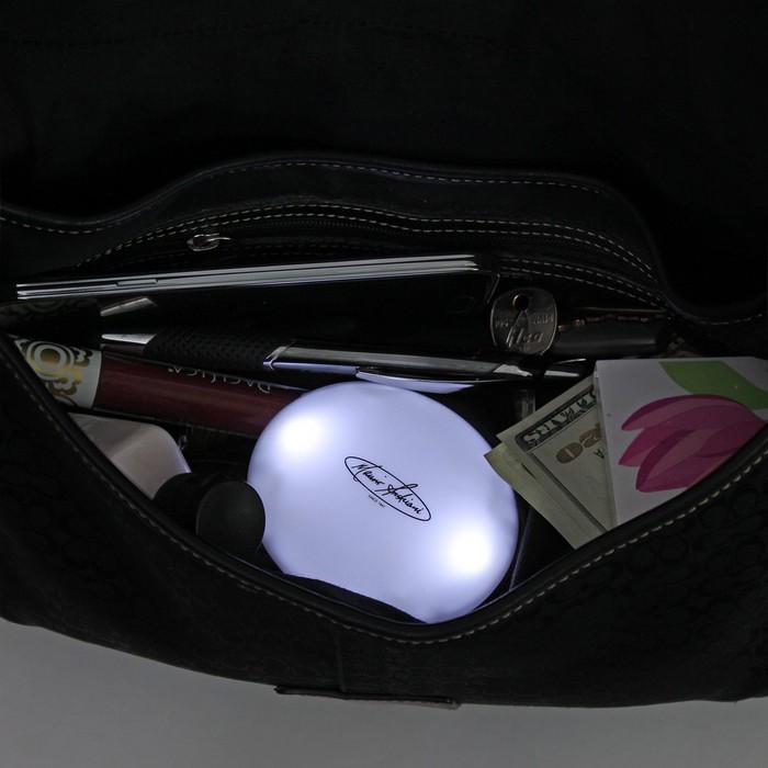 Так появился идеальный гаджет для любой сумочки. Handbag Light – это миниатюрный фонарик компактной круглой формы. Он сработает автоматически, как только ваша рука окажется на небольшом расстоянии. Просто опустите ладонь в сумку, и яркая подсветка включится на 10 секунд. Как показывают исследования, этого времени вполне хватает, чтобы найти нужную вещь даже в полной темноте. По желанию, фонарик всегда можно включить снова, просто прикоснувшись к нему.