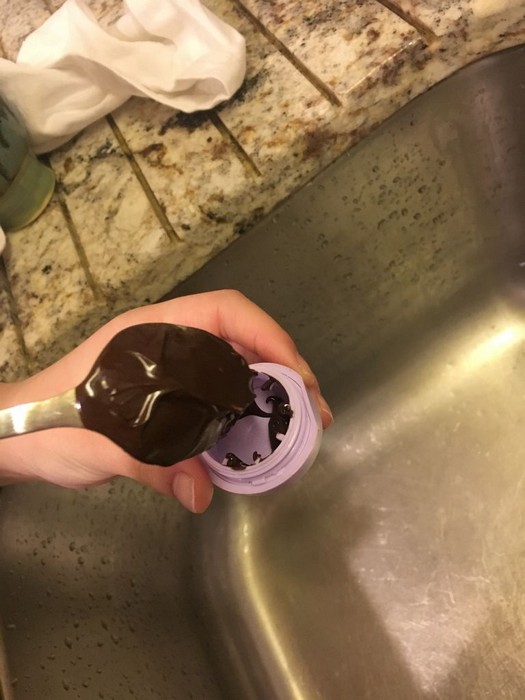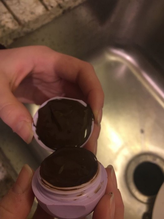 Ложкой аккуратно залейте шоколад в обе половинки упаковки бальзама.