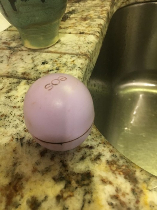1. Бальзам EOS (можно хорошо использованный, чтобы не было мучительно жалко) или его бюджетный аналог в упаковке-шарике;