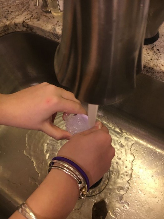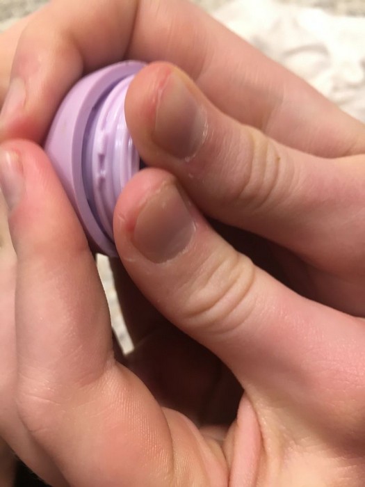 Открутите колесо (механизм-«подставку» для бальзама). Для этого можно аккуратно поддеть его ножом. Хорошенько вымойте его под проточной водой, чтобы не осталось следов бальзама. Верните механизм обратно в упаковку.