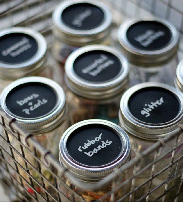 Оригинально оформленное место для хранения материалов для рукоделия, то что понравится определенно.